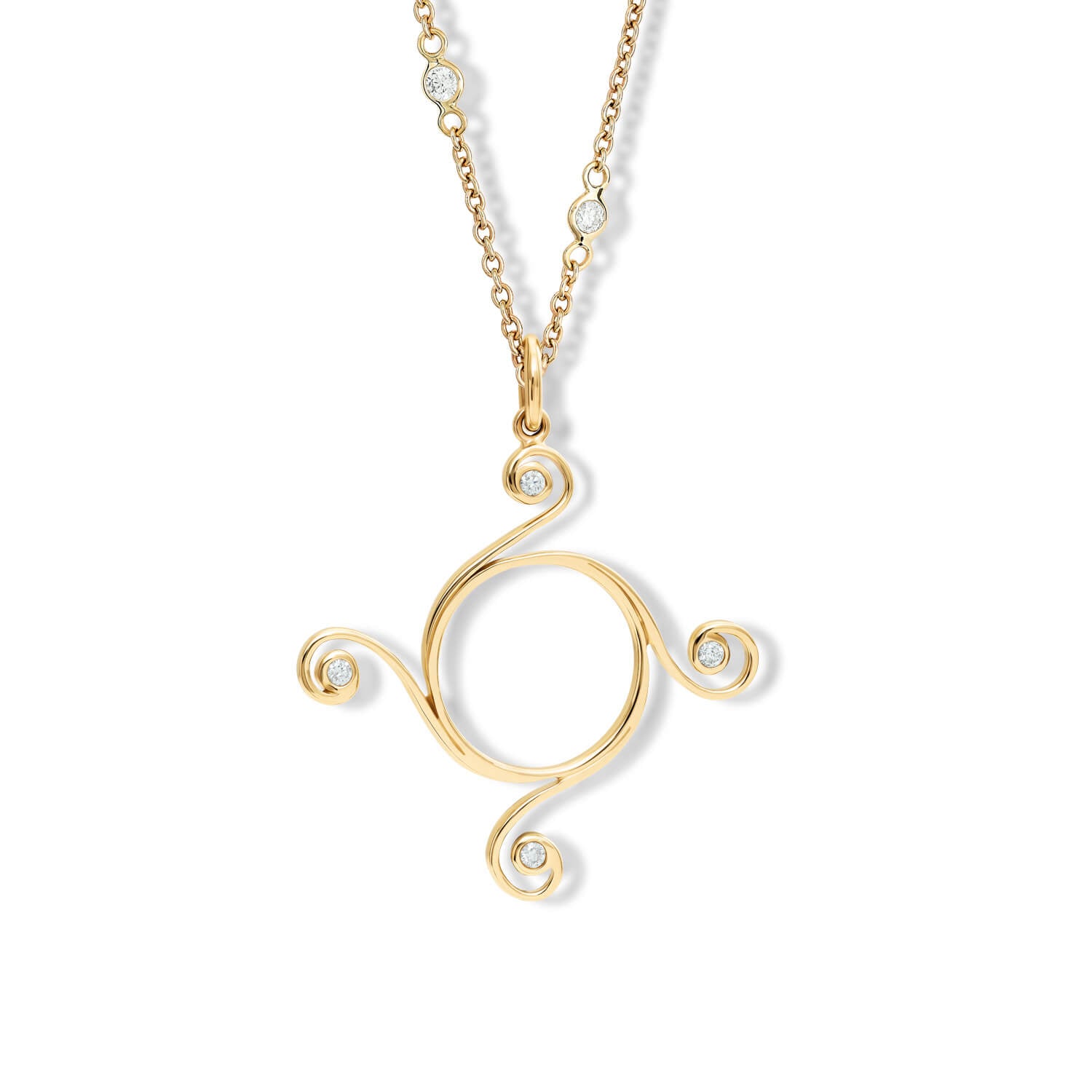 Each of the four spirals in the Athena design is unique, faithfully replicated from Cassandra's original drawing. Its beauty lies in a natural symmetry, yet look closely and you will discover that no two spirals are the same, a quiet reminder of the handcrafted nature of each of Cassandra's jewels.